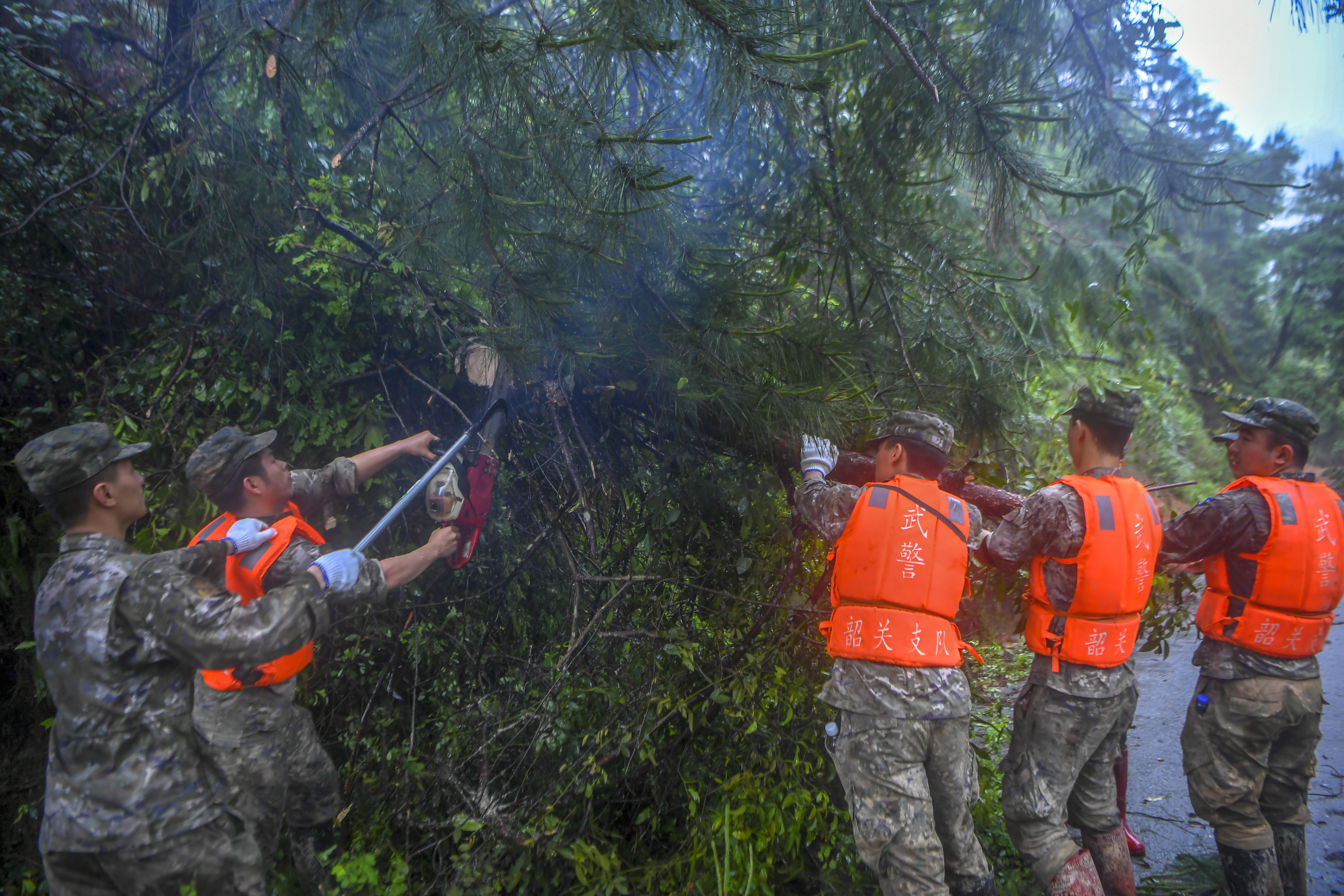 截至23日19時,10名官兵已到鐘屋、曾屋、下洞、紅山、武洞、瑤族練屋6個自然村勘察和搜救,重點幫助解決食物和藥品緊缺問題,10名官兵已于23日21時返回江灣鎮(zhèn)政府。24日,武警韶關(guān)支隊主要負(fù)責(zé)清理工程機(jī)械無法達(dá)到的路段,確保大巴車能通行,并協(xié)助政府干部進(jìn)到村小組轉(zhuǎn)移群眾。