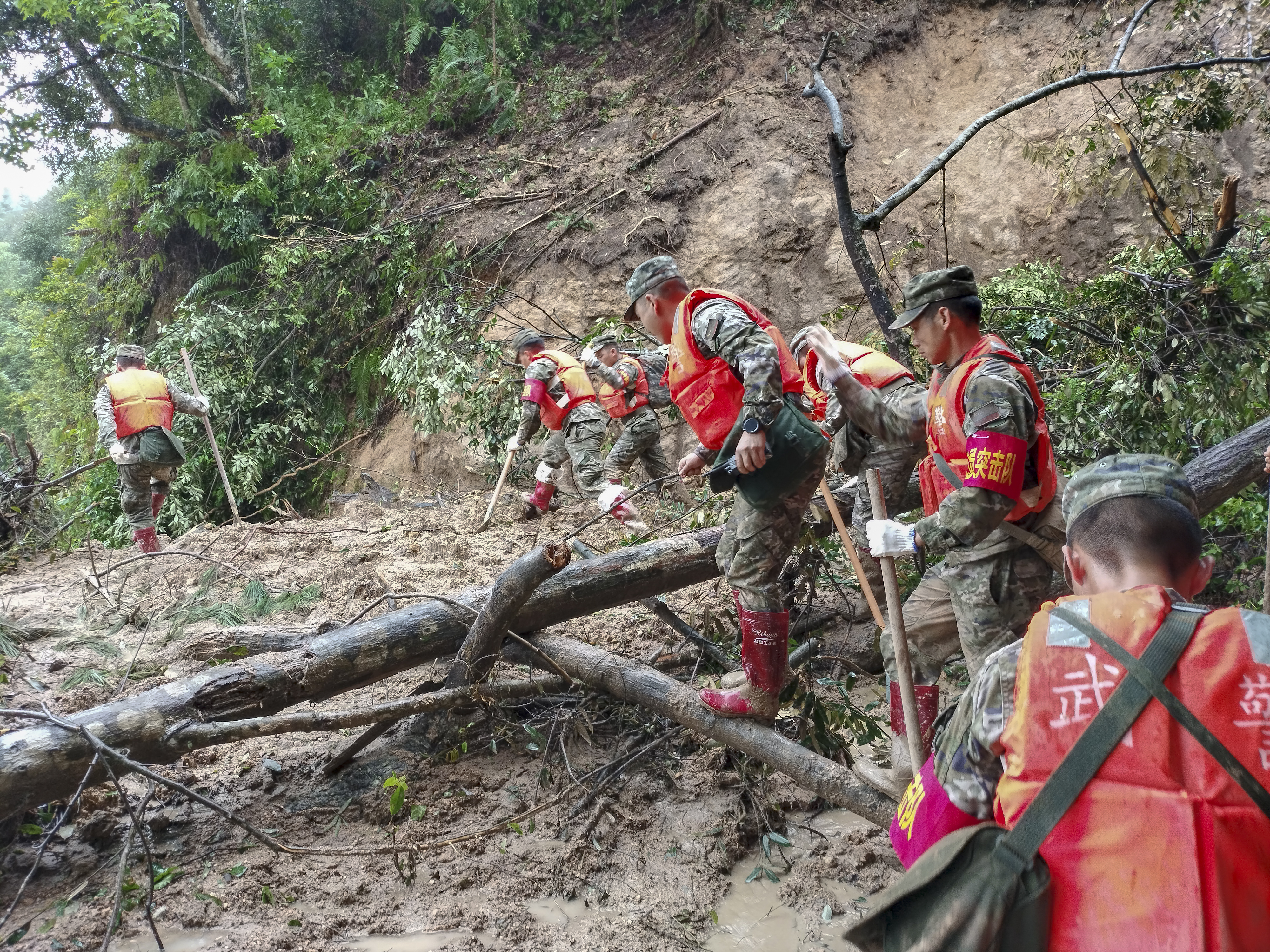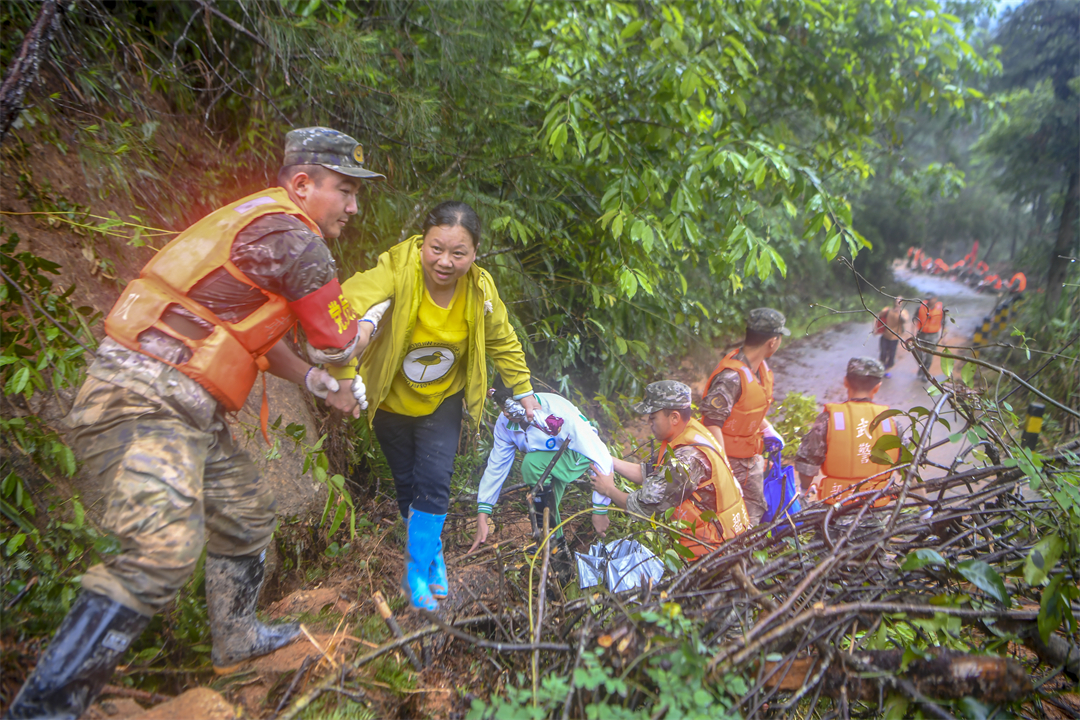 “前面塌方,大家把鞋帶系緊一點,不然陷到泥里拔不出來。”降雨仍在繼續(xù),洪水還未退去。進(jìn)山不到200米,偵察股股長王闖就扯著嗓子喊道,塌方的泥土被雨水沖刷得像一團(tuán)團(tuán)“糨糊”,一腳踩下去就能沒過大腿根部。