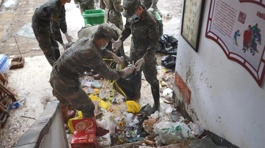 經(jīng)過9處塌方和泥石流之后,11時20分官兵抵達(dá)最近的梁屋瑤族練屋自然村。只見村內(nèi)淤泥遍地,一輛停在路邊的轎車已被泥土覆蓋了4個輪胎,村干部鄺偉和立即帶領(lǐng)官兵逐戶查看受災(zāi)情況、協(xié)助解決困難。