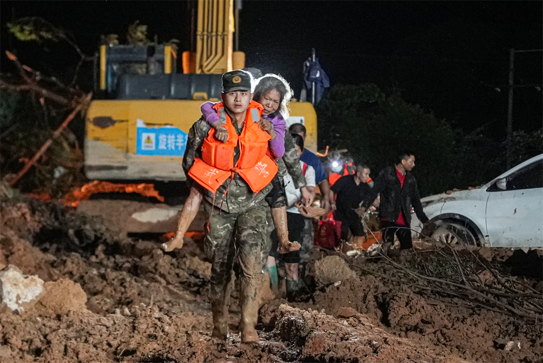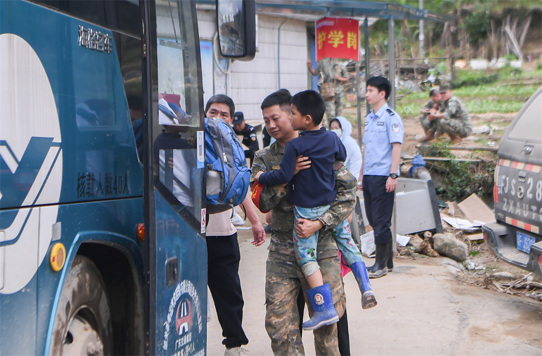 “凌晨6點天還沒亮,所有官兵就帶上干糧出發(fā)到各個村去疏散群眾?!睏钪艺f,江灣鎮(zhèn)下屬6個行政村有大大小小43個自然村,除情況最嚴重的梁屋村派出60人外,鍋溪村、圍坪村、江灣中心小學各派出30名兵力,胡屋村派出40名兵力,劃分若干個小組,聯(lián)合地方救援人員,按照先遣勘察、重裝開道、輕裝跟進、觀察警戒的方式,逐村逐戶搜索勸離,剩余人員就在江灣中學和江灣鎮(zhèn)政府協(xié)助轉(zhuǎn)運群眾。