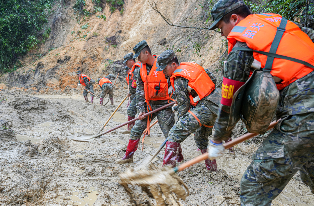 4月24日當天,武警韶關(guān)支隊探察房屋500余棟,搜尋房間3000余間,協(xié)助向外轉(zhuǎn)運群眾600余人,搶通道路7.2公里,清理淤泥5000余立方米,涉水轉(zhuǎn)移被困群眾5名。