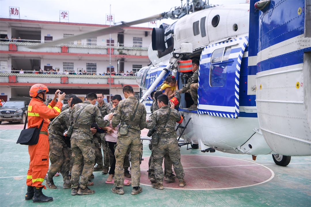 轉(zhuǎn)移工作最難的是梁屋到武洞方向,僅2公里的道路有9處大的塌方點,等機械開道再進去轉(zhuǎn)移肯定來不及。楊忠當即決定,派出40名兵力徒步進村搜索轉(zhuǎn)移,并協(xié)調(diào)聯(lián)指派出直升機進行轉(zhuǎn)運。