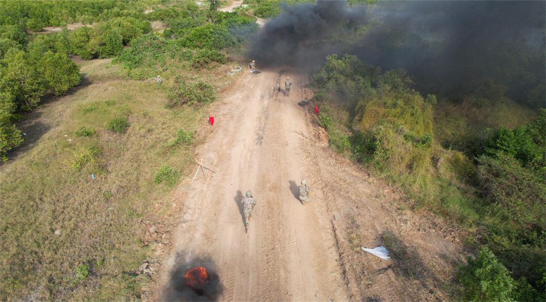 下午4時許,實兵合練正式開始。中坦雙方參演部隊以執(zhí)行聯(lián)合反恐軍事行動任務(wù)為背景,共同完成聯(lián)合滲透偵察、多路分區(qū)圍殲、隱蔽突入營救、立體追擊清剿等課目演練,在近似實戰(zhàn)的環(huán)境中,錘煉提升中坦雙方官兵協(xié)同作戰(zhàn)能力。
