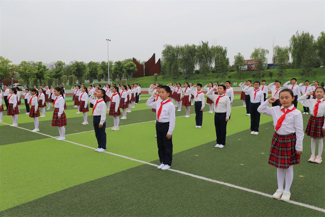 隨后,2023年度“紅領巾獎章”全國五星章獲得者、五(8)中隊長楊天聰帶領全體隊員在國旗下立下誓言,要堅定不移聽黨話、跟黨走,用實際行動踐行愛國之志。