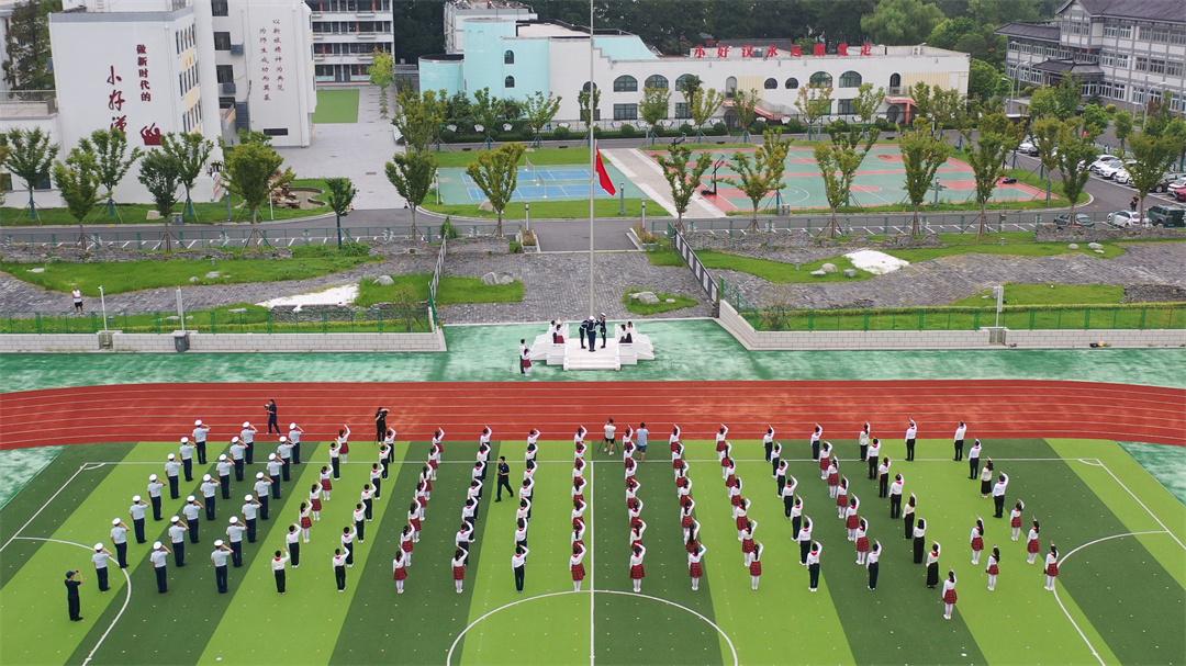 升旗儀式上,新安小學少先隊大隊長夏添分享了她在國旗下成長的故事,并堅定傳承新旅紅色基因、爭做“四個自信”小好漢的決心。江蘇省少先隊輔導員技能大賽特等獎獲得者、淮安市“十佳少先隊輔導員”于晶晶老師講述了新安小學的國旗故事,激勵少先隊員厚植愛黨、愛國、愛人民、愛社會主義的情感,立志為五星紅旗增光添彩。