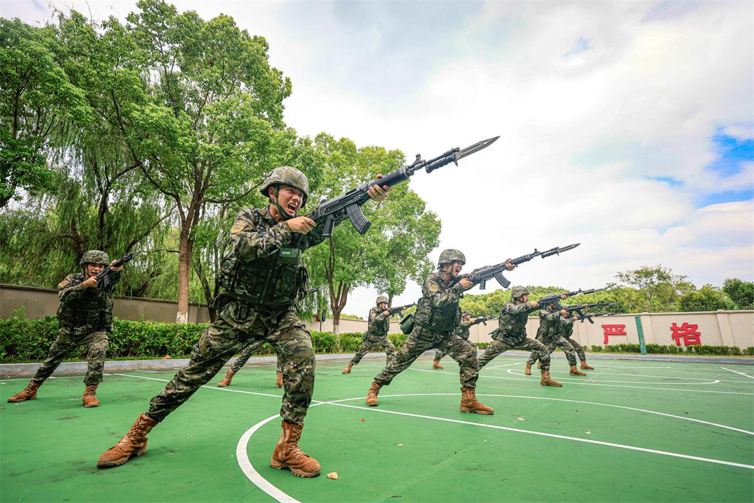 圖為中隊(duì)官兵進(jìn)行刺殺訓(xùn)練。