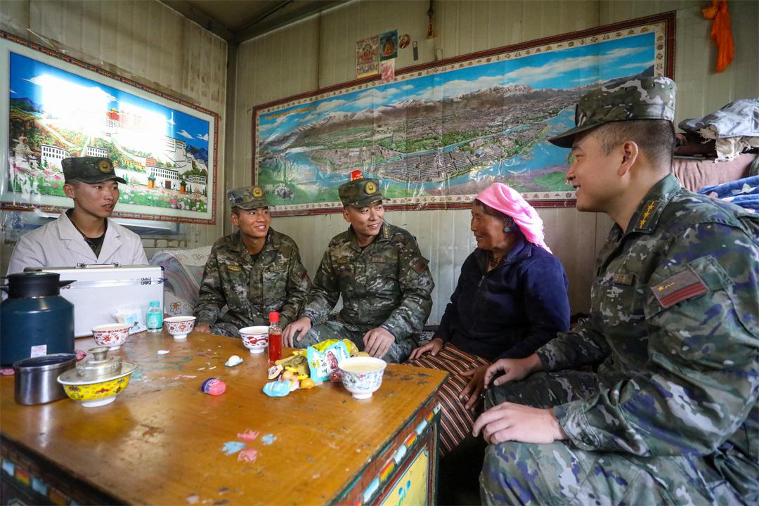 圖為武警官兵慰問(wèn)當(dāng)?shù)厝罕姟?/span>