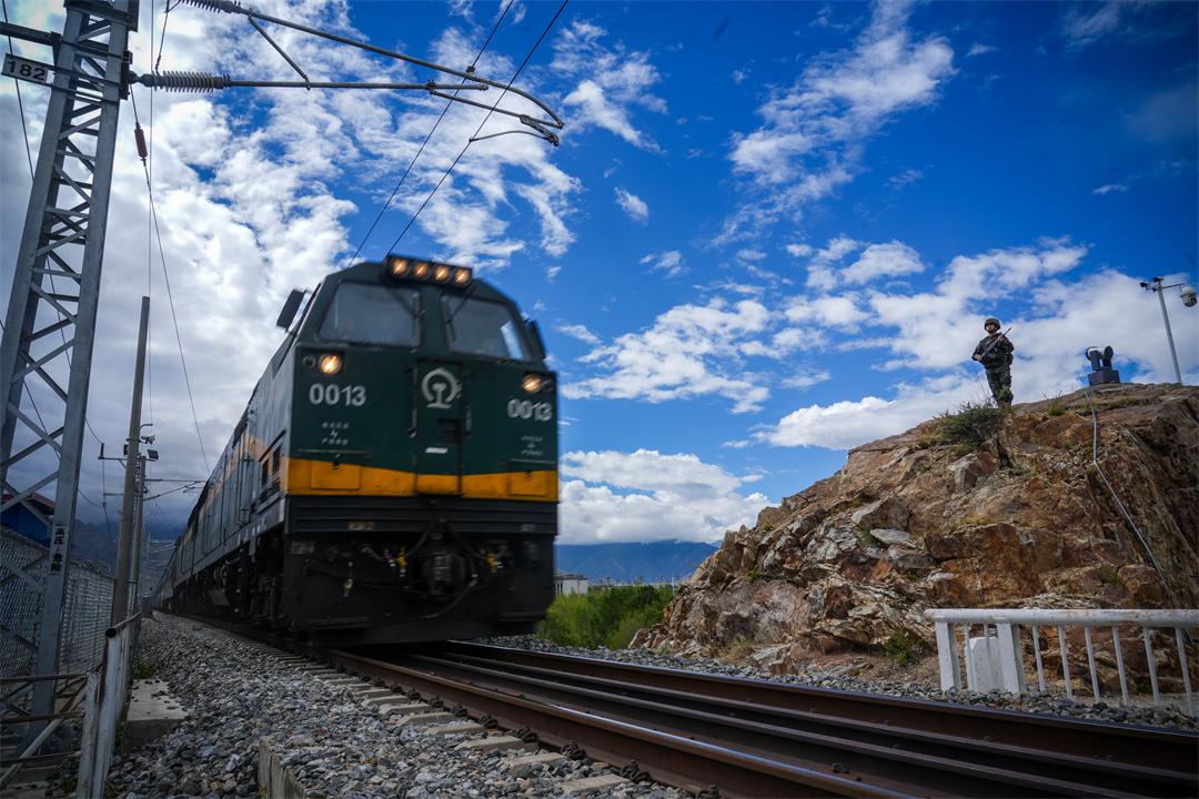 青藏鐵路是西藏連接內(nèi)地最重要的生命線。守護(hù)這條“天路”的武警西藏總隊(duì)拉薩支隊(duì)執(zhí)勤八大隊(duì)官兵,在一列列火車?guó)Q響的汽笛聲中,對(duì)這條幸福路、發(fā)展路、團(tuán)結(jié)路有著更為深刻的感悟。他們守護(hù)的不僅是鐵路,而是西藏經(jīng)濟(jì)社會(huì)發(fā)展的大動(dòng)脈。