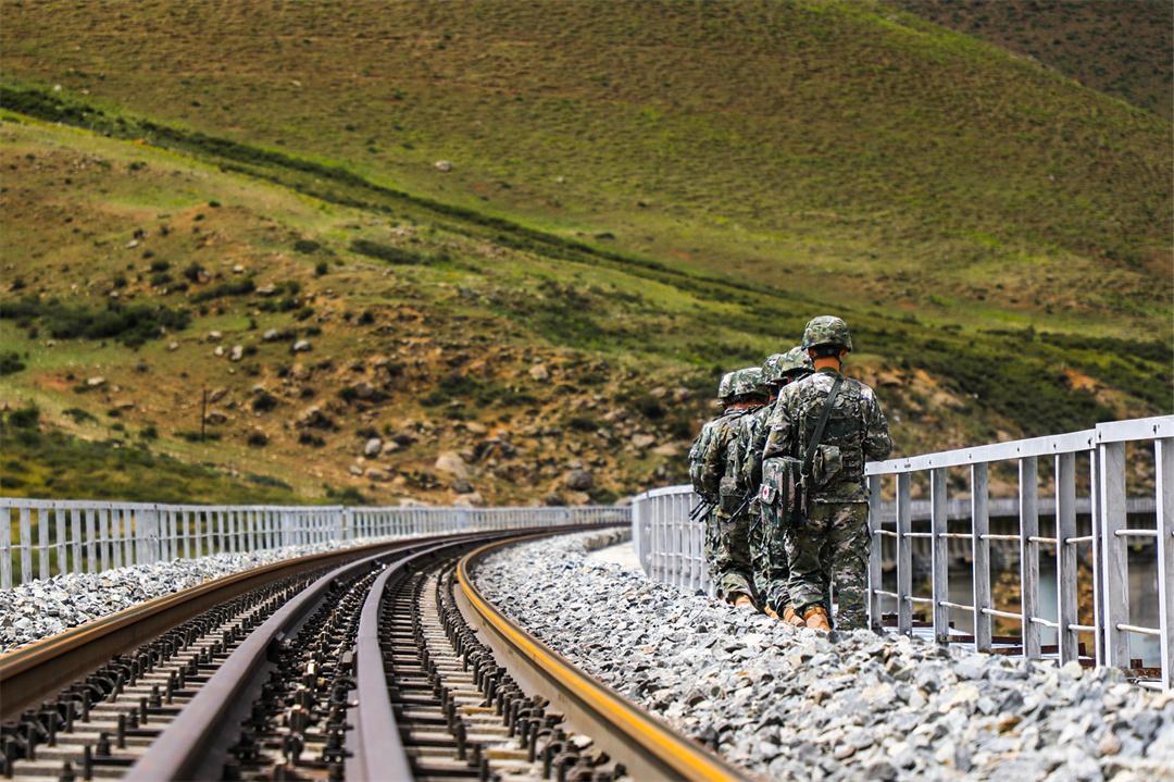 圖為武警官兵守護(hù)青藏鐵路。