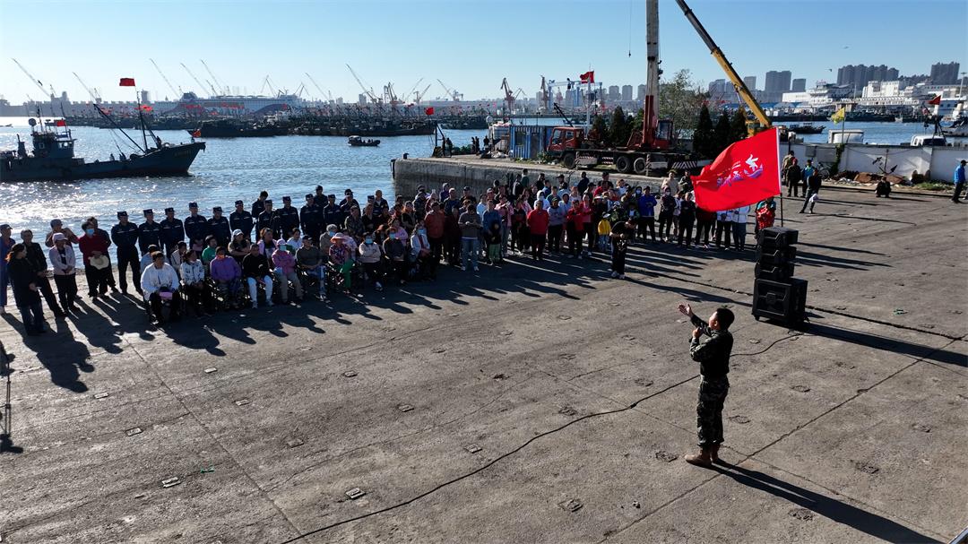 在大連遼漁碼頭演出時,當天海風凜冽,氣溫驟降,但絲毫沒有減弱漁民朋友的熱情與期待。由于觀眾較多,座位遠遠不夠,許多漁民朋友索性站著,甚至攀上漁船、車頂。這時,隊員陸敏志腰傷突發(fā)鉆心地疼。大連海警局宣傳干事建議他休息,陸智卻說,如果今天不能展示最好的表演狀態(tài),那就對不起臺下駐地執(zhí)法員和漁民朋友的熱情與期待。就這樣,他和隊員們與觀眾進行了一場溫暖的雙向奔赴。