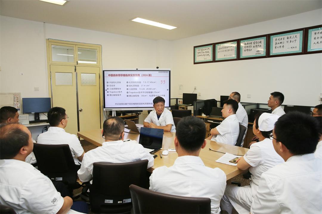 圖為骨科醫(yī)學(xué)部顯微外科張建政主任帶領(lǐng)團(tuán)隊(duì)討論和研究指南的臨床適用范圍。