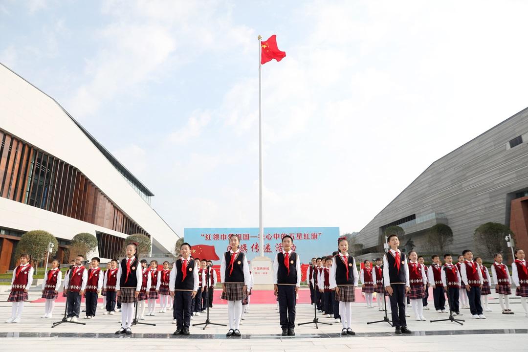 10月16日,“紅領(lǐng)巾愛(ài)祖國(guó)——我心中的五星紅旗”國(guó)旗傳遞活動(dòng)在四川省綿陽(yáng)市梓潼縣中國(guó)兩彈城舉行。共青團(tuán)四川省委、四川省少工委、共青團(tuán)綿陽(yáng)市委、綿陽(yáng)市教育局、綿陽(yáng)市少工委、中共梓潼縣委、梓潼縣人民政府、四川兩彈一星干部學(xué)院、中國(guó)工程物理研究院團(tuán)委等相關(guān)部門同志以及綿陽(yáng)市中小學(xué)少先隊(duì)員、少先隊(duì)輔導(dǎo)員代表500余人參加活動(dòng)。