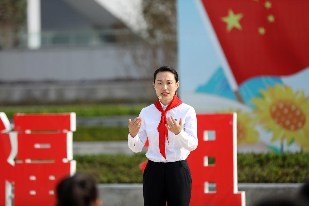 國(guó)旗下,全國(guó)紅領(lǐng)巾巡講團(tuán)成員田慧以“第一顆原子彈爆炸成功背后的故事”為題進(jìn)行宣講,激勵(lì)少先隊(duì)員們熱愛(ài)祖國(guó),樹立遠(yuǎn)大理想。綿陽(yáng)高新區(qū)火炬實(shí)驗(yàn)小學(xué)五(4)中隊(duì)少先隊(duì)員唐萌韓分享了參加“與航天員面對(duì)面”活動(dòng)的感受,展現(xiàn)新時(shí)代少先隊(duì)員勇敢探索和對(duì)科學(xué)的執(zhí)著追求。