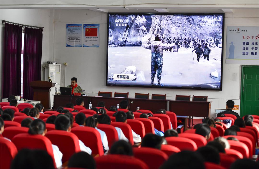 圖為在肥東縣長(zhǎng)臨河學(xué)校中心小學(xué),孩子們聆聽(tīng)英雄故事。