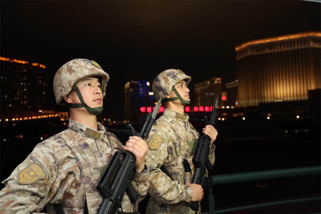 進駐25年來,駐澳門部隊官兵忠實履行防務(wù),沒有發(fā)生一起違反當?shù)胤煞ㄒ?guī)的事,沒有發(fā)生一起軍地糾紛,被譽為“新時代霓虹燈下的哨兵”。