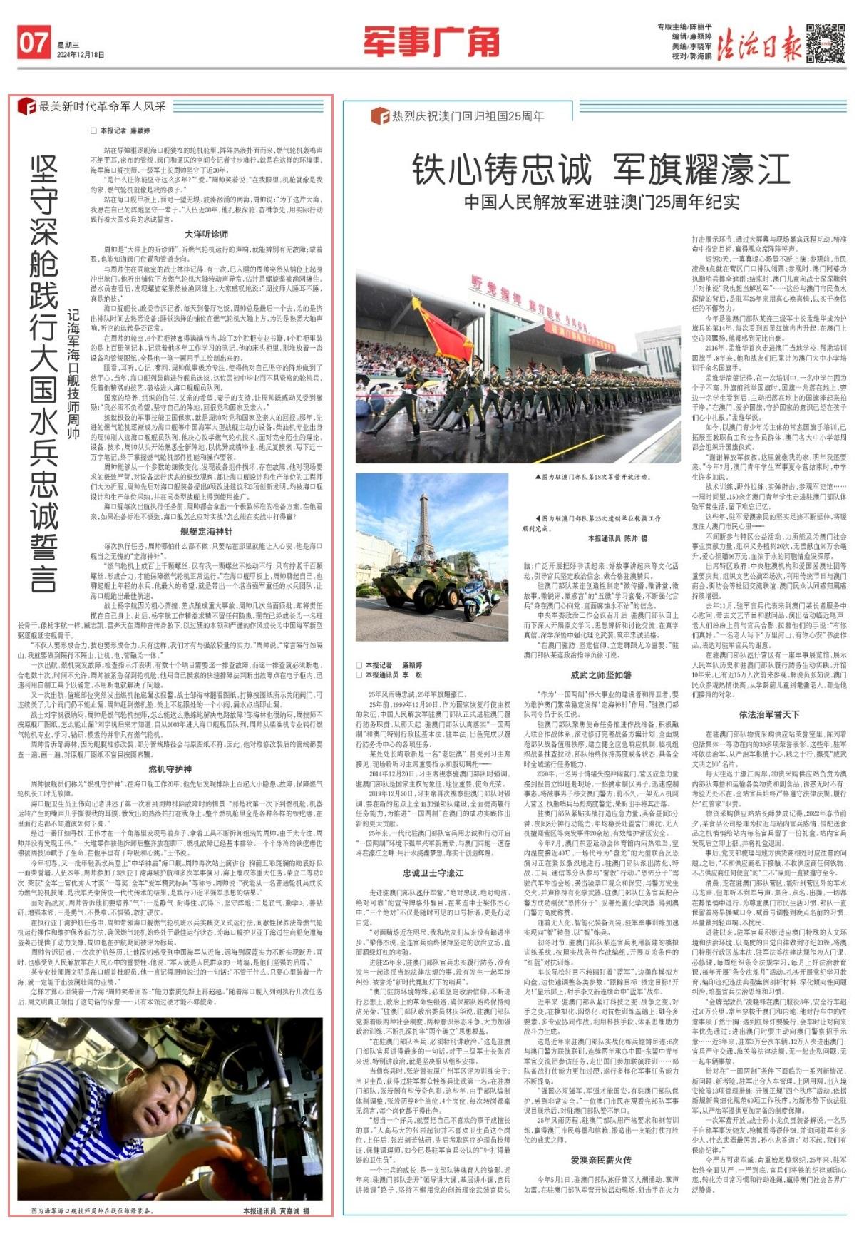 怎樣才算心里裝著一片海?周帥笑著回答:“能力素質先跟上再超越?!彪S著??谂炄肓械綀?zhí)行幾次任務后,周文明真正領悟了這句話的深意——只有本領過硬才能不辱使命。