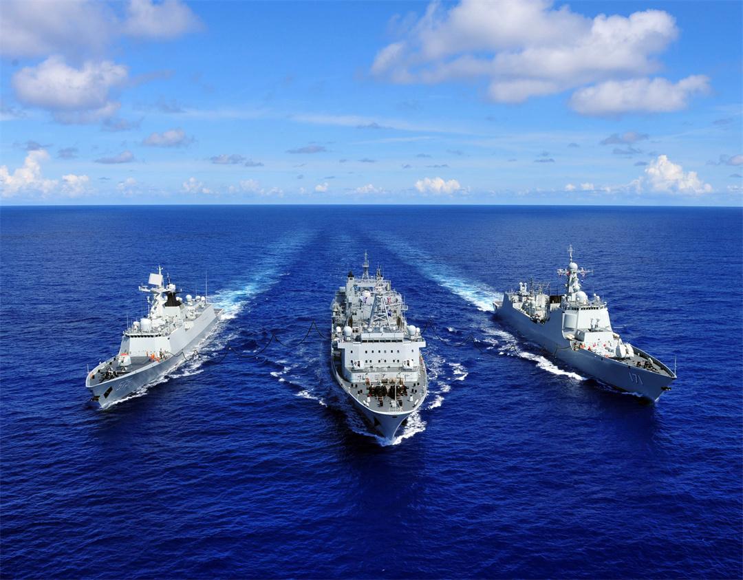 圖為??谂炦M行海上橫向補給。