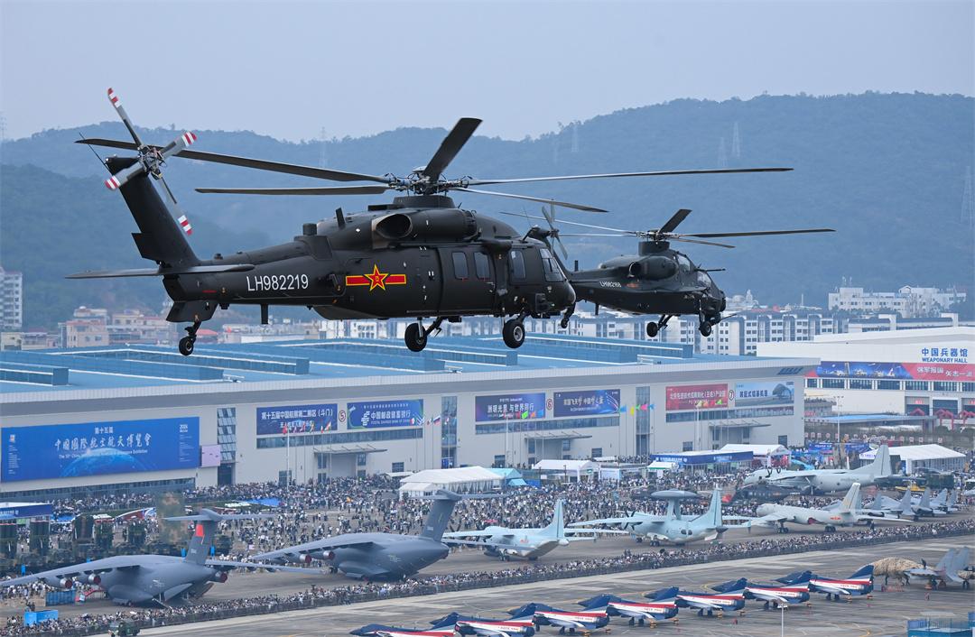藍(lán)天之下,戰(zhàn)機(jī)轟鳴。第十五屆中國(guó)航展現(xiàn)場(chǎng),陸軍數(shù)架多型戰(zhàn)機(jī)貫空而來,呈戰(zhàn)斗隊(duì)形通場(chǎng)。