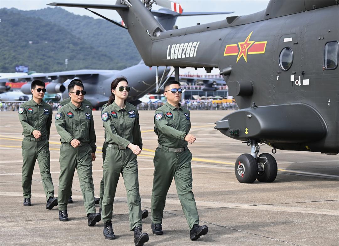 圖為第十五屆中國(guó)航展上,女飛行員徐楓燦(右二)與戰(zhàn)友一起走向機(jī)位。張永進(jìn) 攝