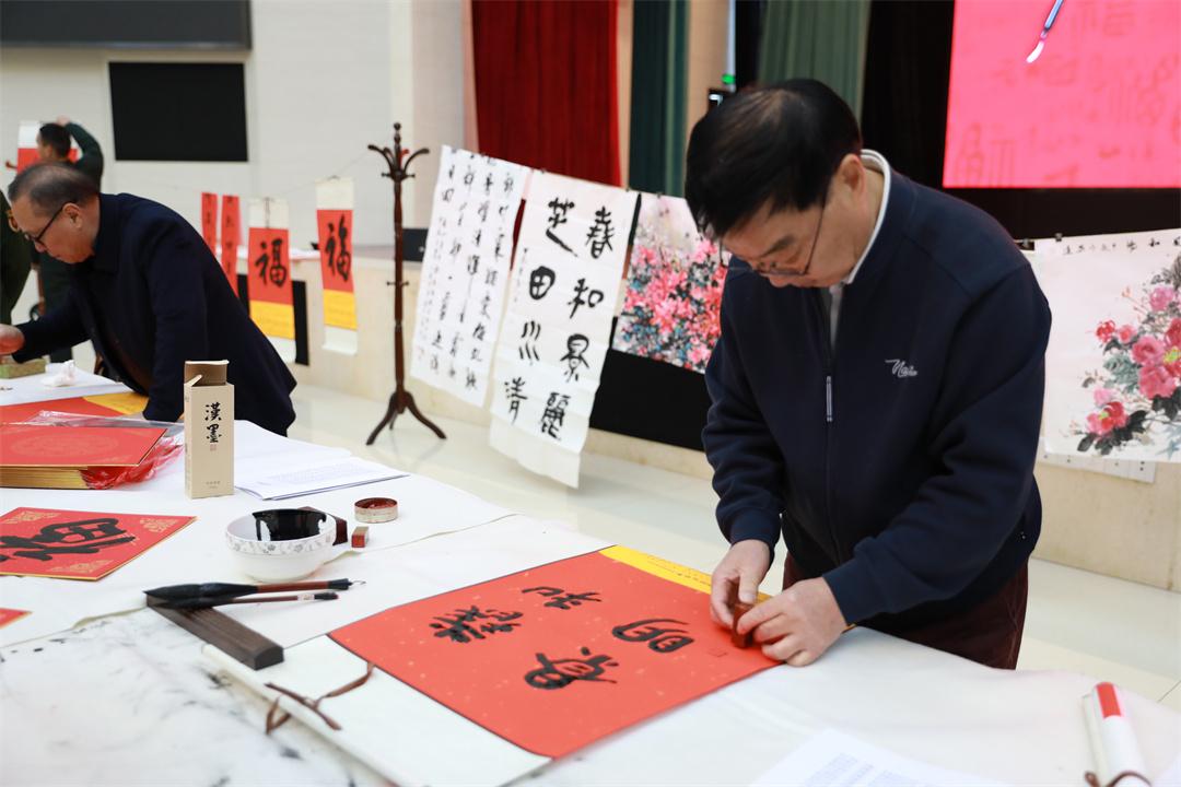 為弘揚(yáng)傳統(tǒng)文化,營(yíng)造歡樂(lè)祥和的節(jié)日氛圍,近日,解放軍長(zhǎng)沙軍事檢察院聯(lián)合湖南省人民檢察院政治部、湖南省檢察官文聯(lián)開(kāi)展“軍檢一家親、書(shū)畫(huà)送官兵”檢察文化進(jìn)軍營(yíng)活動(dòng),特邀湖南省檢察官文聯(lián)10余名書(shū)畫(huà)家與部隊(duì)官兵和軍屬代表齊聚一堂,用筆墨承載祝福,在傳統(tǒng)文化熏陶中涵養(yǎng)法治精神。