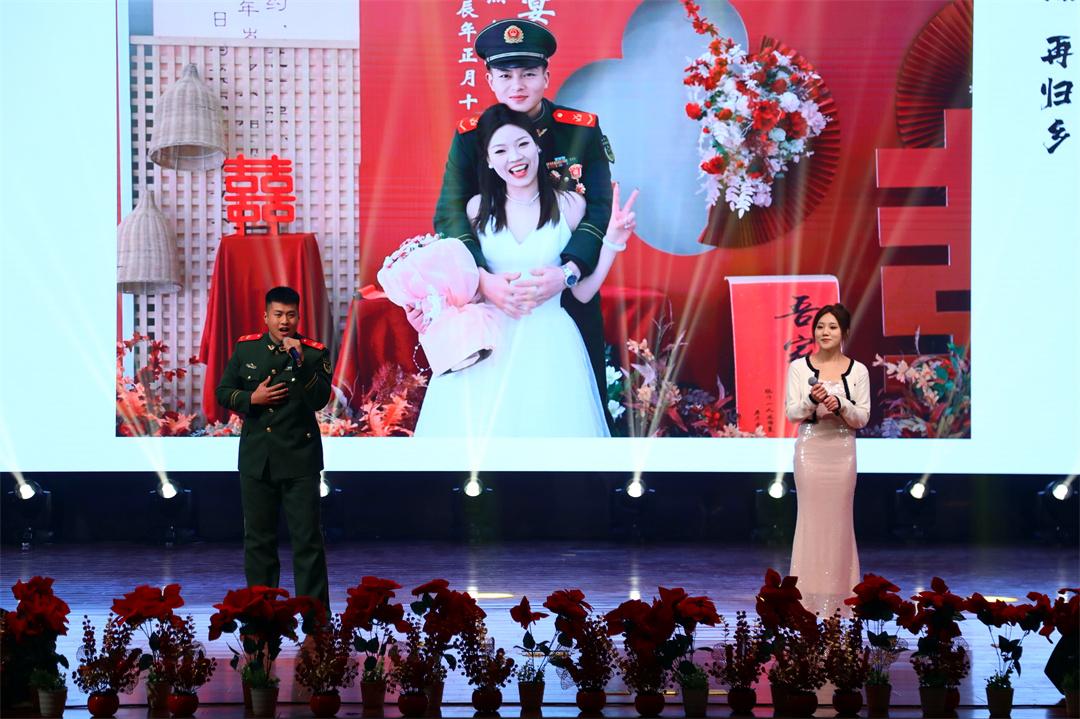 圖為改編歌曲《婚約》呈現(xiàn)單位集體婚禮暖兵事。