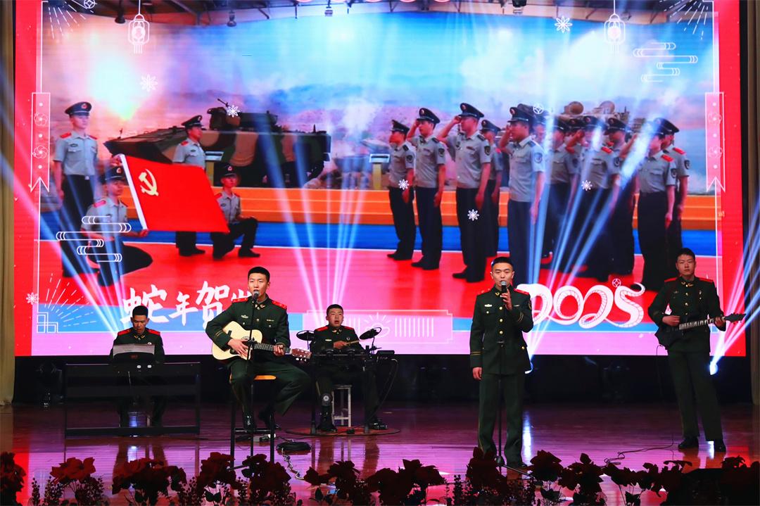 喜慶的腰鼓、歡快的舞獅、民族樂曲……文藝匯演以歌舞《新的一年》拉開序幕,“一隊一品”特色文化隊伍相交相融,展示了官兵激昂的精神風(fēng)貌。此次文藝匯演以部隊練兵備戰(zhàn)、安全管理、文化建設(shè)、軍民魚水情等為素材,通過“兵寫兵、兵演兵、兵唱兵”的形式,反映部隊建設(shè)成果、講述官兵暖心故事、營造節(jié)日濃厚氛圍,非遺表演、樂隊奏唱、小品續(xù)集、情景劇場等節(jié)目輪番上演,精彩紛呈,現(xiàn)場氛圍歡樂祥和。