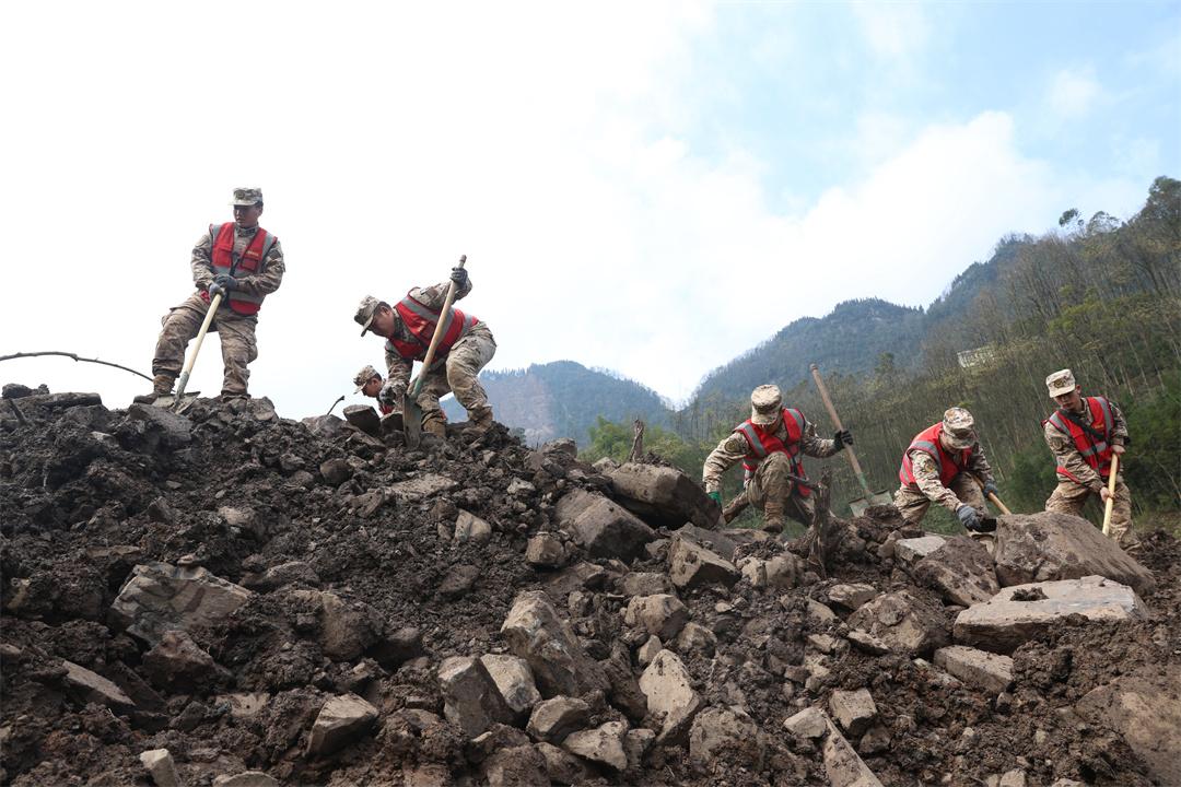 武警官兵搜救筠連山體滑坡失聯(lián)人員