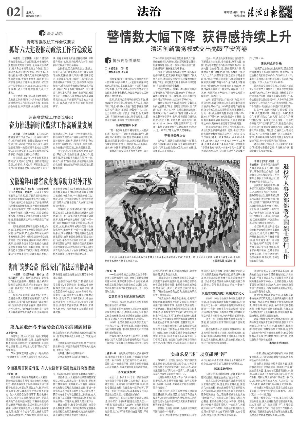 記者2月14日從退役軍人事務(wù)部獲悉,2月13日,退役軍人事務(wù)部聯(lián)合公安部、交通運(yùn)輸部、文化和旅游部召開全國烈士祭掃工作視頻會議,部署2025年烈士祭掃工作。