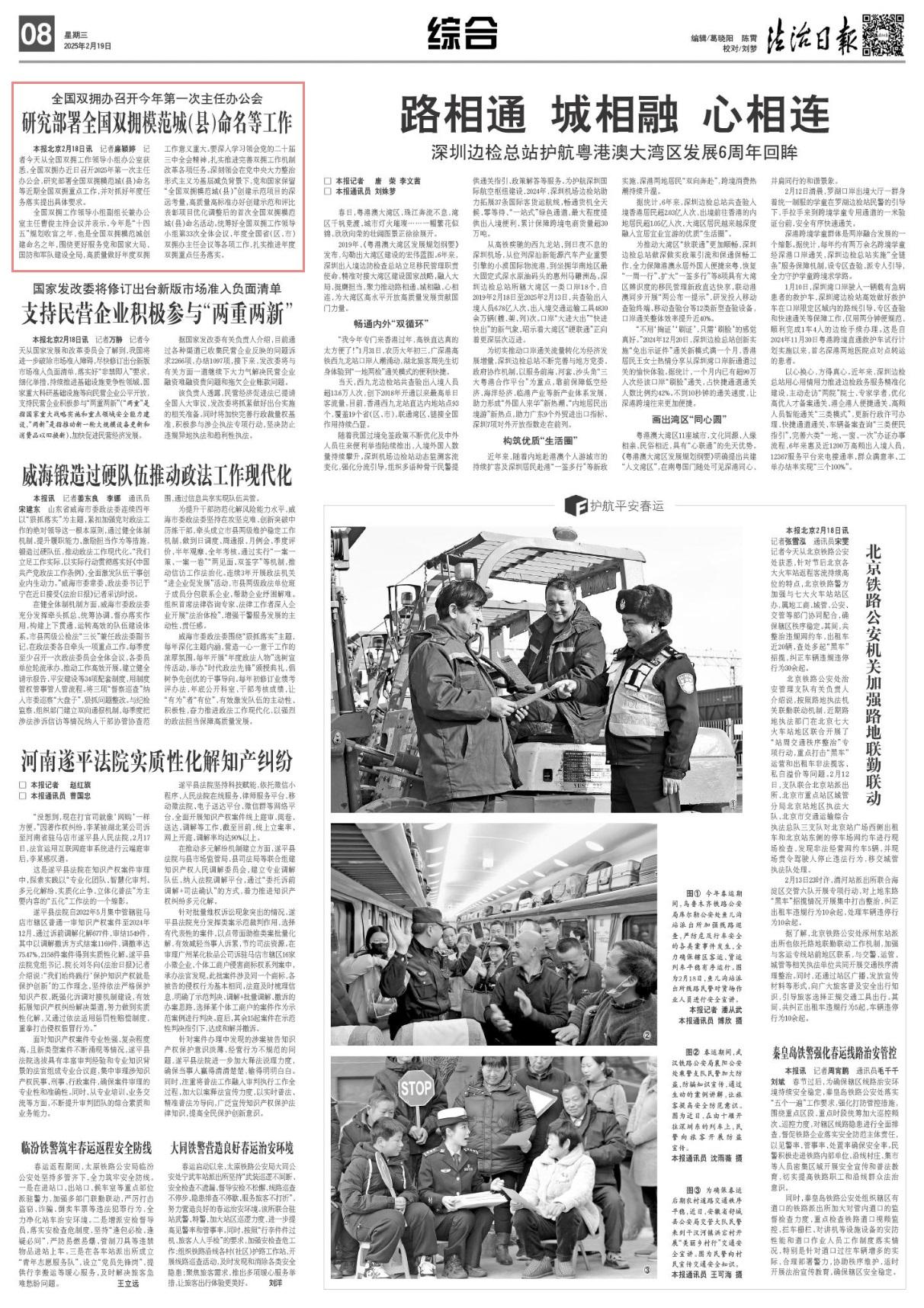 記者2月18日從全國(guó)雙擁工作領(lǐng)導(dǎo)小組辦公室獲悉,全國(guó)雙擁辦近日召開2025年第一次主任辦公會(huì),研究部署全國(guó)雙擁模范城(縣)命名等近期全國(guó)雙擁重點(diǎn)工作,并對(duì)抓好年度任務(wù)落實(shí)提出具體要求。