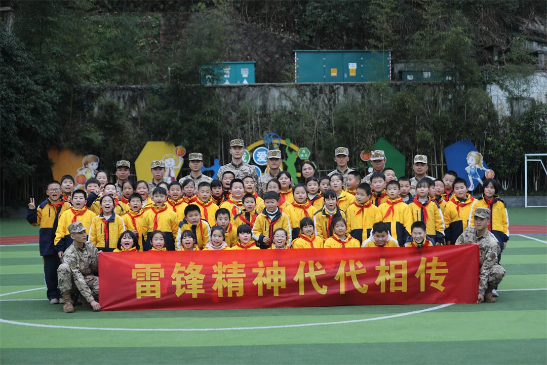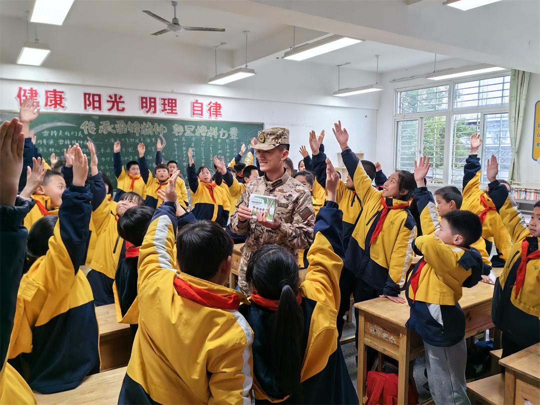 圖為武警官兵來到駐地小學(xué)用雷鋒精神共建共育新人。