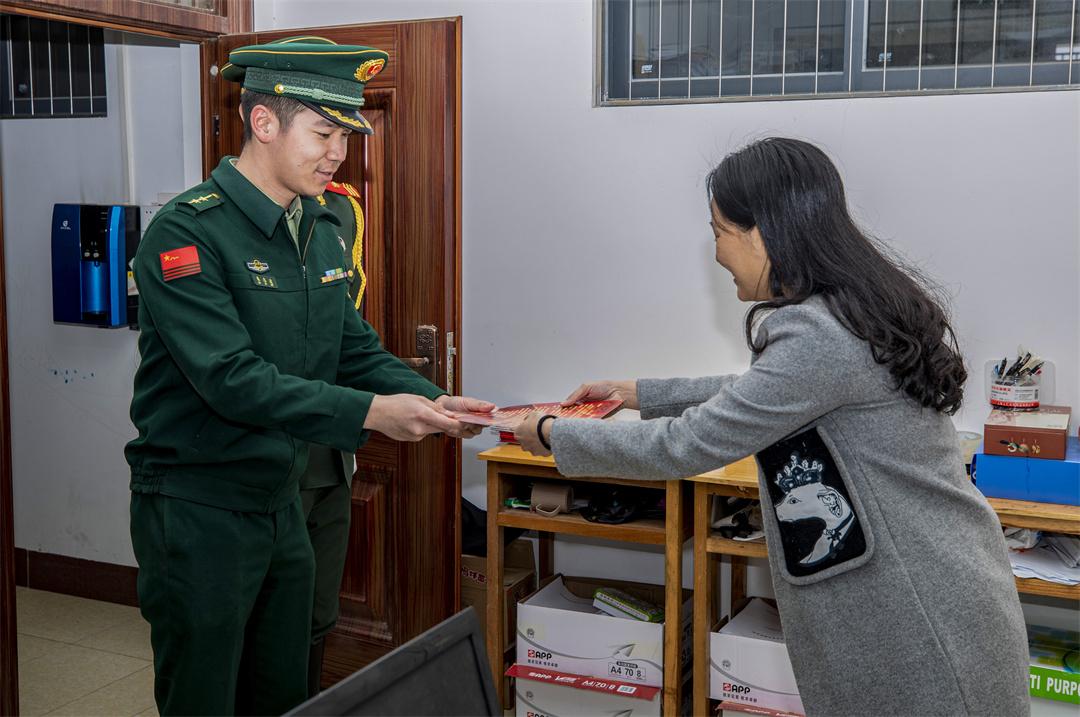 圖為官兵向軍屬送去節(jié)日祝福。