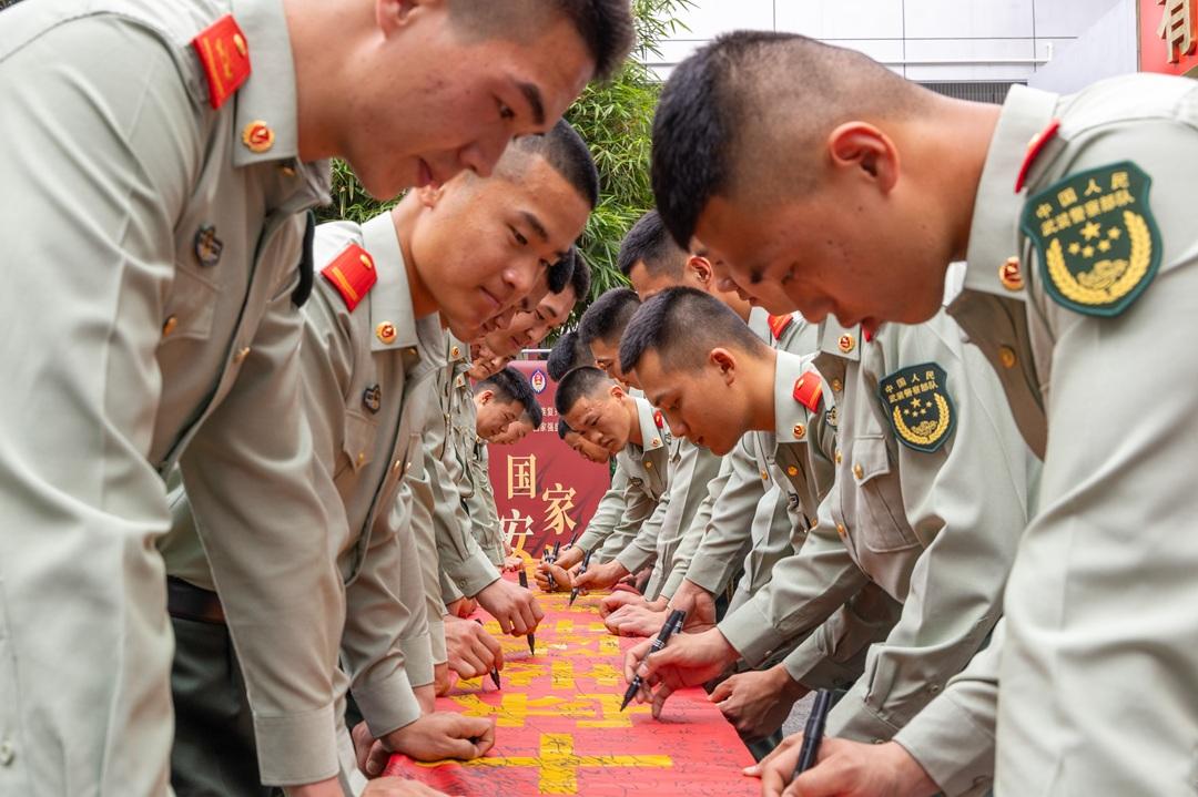 圖為武警官兵開展全民國家安全教育日主題簽名活動。