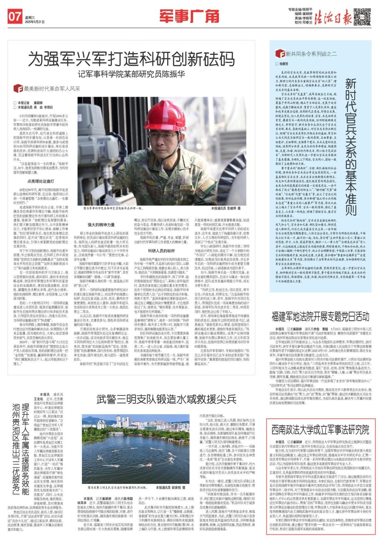 據(jù)介紹,在當(dāng)前時(shí)代背景與國(guó)際形勢(shì)下,加強(qiáng)軍事法學(xué)學(xué)科建設(shè)具有重大現(xiàn)實(shí)意義和深遠(yuǎn)戰(zhàn)略意義。通過成立軍事法研究院,搭建高水平學(xué)術(shù)研究平臺(tái),匯聚一批優(yōu)秀軍事法學(xué)科研骨干,開展一系列軍事法理論與實(shí)踐前沿性的學(xué)術(shù)教學(xué)研究活動(dòng),可以為國(guó)家和軍隊(duì)培養(yǎng)、輸送更多高素質(zhì)軍事法學(xué)專業(yè)人才。