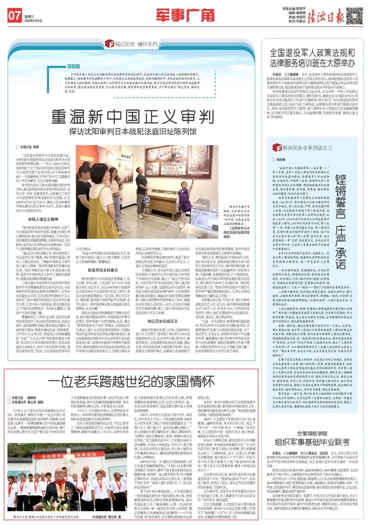 這次文物捐贈,王玉堂因行動不便未能親自前往現(xiàn)場。得知孫女在紀念館留言簿上代筆寫下“勛章屬于人民”時,老人渾濁的眼睛泛起淚光,布滿皺紋的嘴角微微上揚。