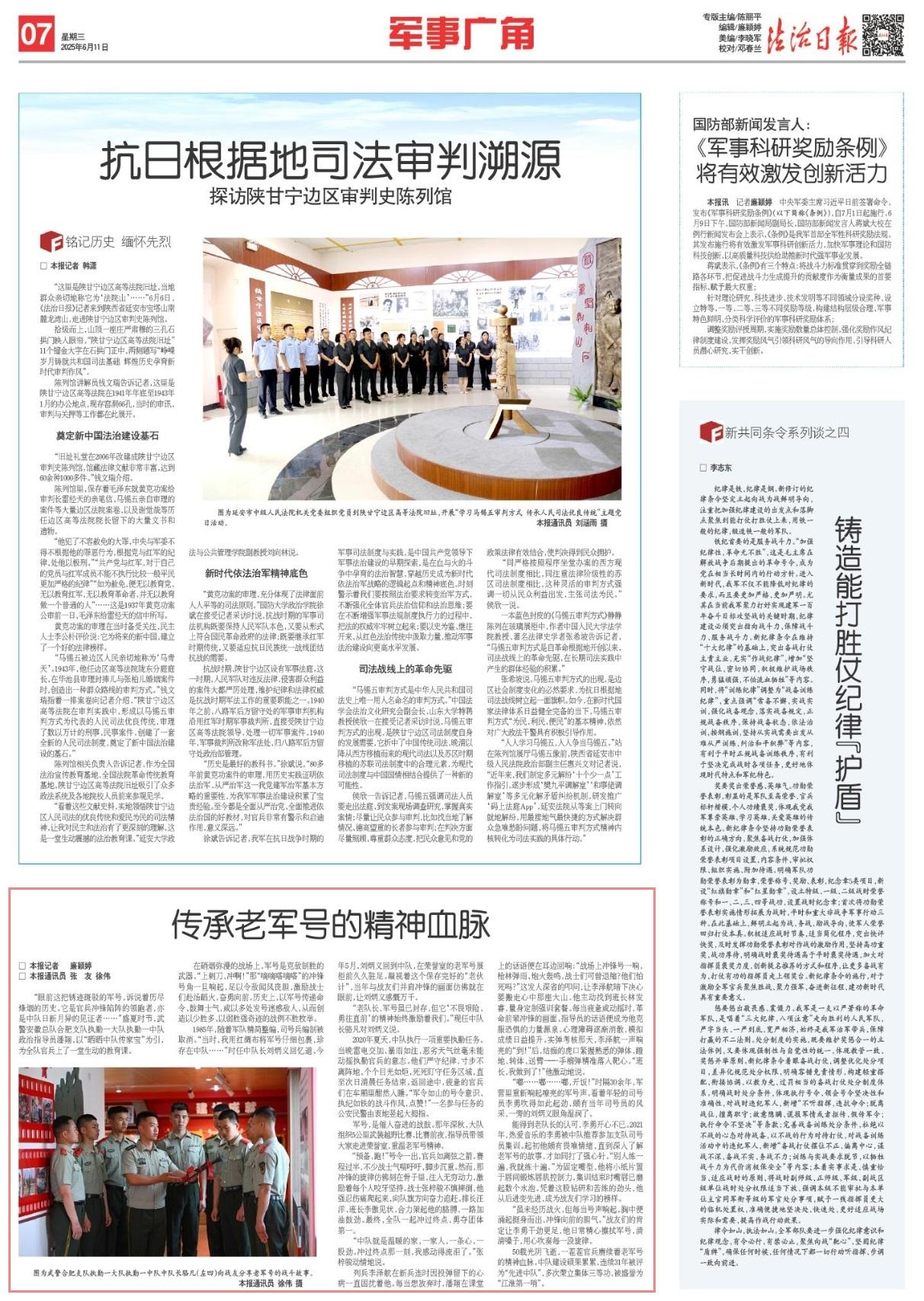“眼前這把銹跡斑駁的軍號(hào),訴說著歷盡烽煙的歷史。它是官兵沖鋒陷陣的領(lǐng)跑者,亦是中隊(duì)日新月異的見證者……”盛夏時(shí)節(jié),武警安徽總隊(duì)合肥支隊(duì)執(zhí)勤一大隊(duì)執(zhí)勤一中隊(duì)政治指導(dǎo)員潘翔,以“曬曬中隊(duì)傳家寶”為引,為全隊(duì)官兵上了一堂生動(dòng)的教育課。