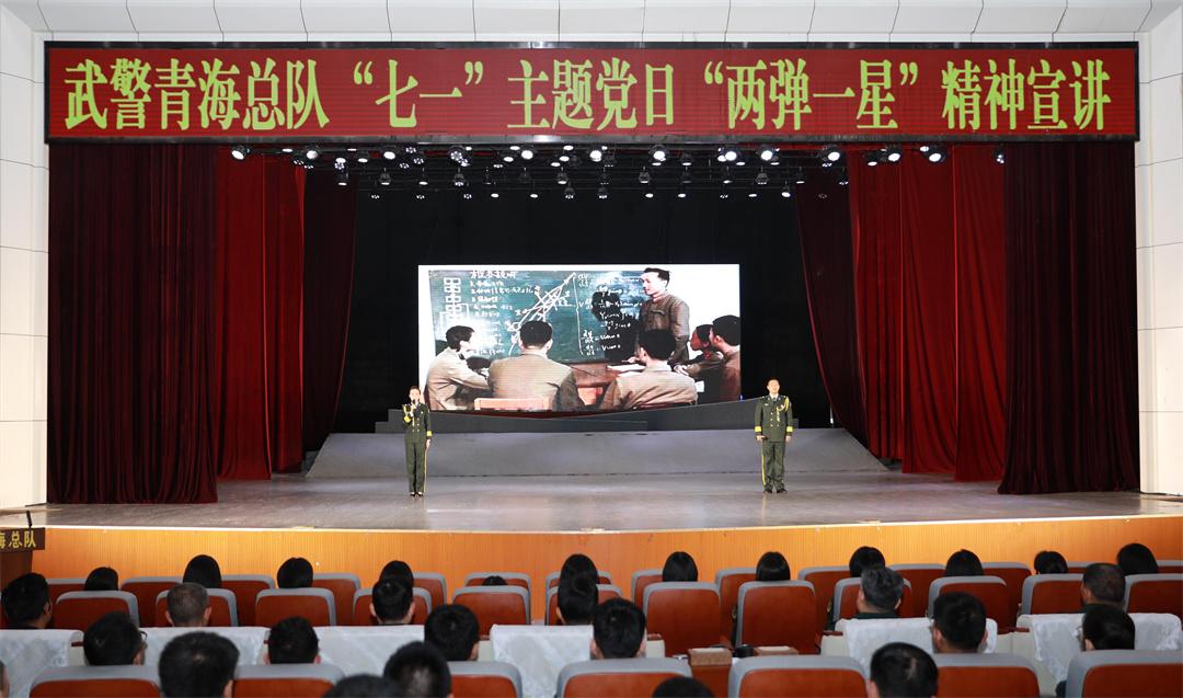 在“七一”建黨節(jié)來臨之際,6月24日,中國原子城“兩彈一星”精神宣講團走進武警青??傟牐_展《永不褪色的金銀灘——“兩彈一星”精神永放光芒》主題宣講活動。