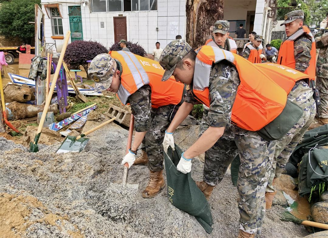 18時50分,武警百色支隊官兵依據(jù)預(yù)案出動15名官兵,攜帶鐵鏟、鐵鎬、救生衣等各類搶險救援裝備,采取摩托化方式機動前往受災(zāi)地域,協(xié)助當(dāng)?shù)乜h政府擔(dān)負(fù)搶險救災(zāi)任務(wù)。