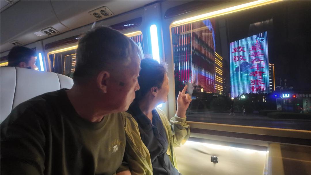 圖為張楠父母乘車參加“為英烈亮燈”活動。