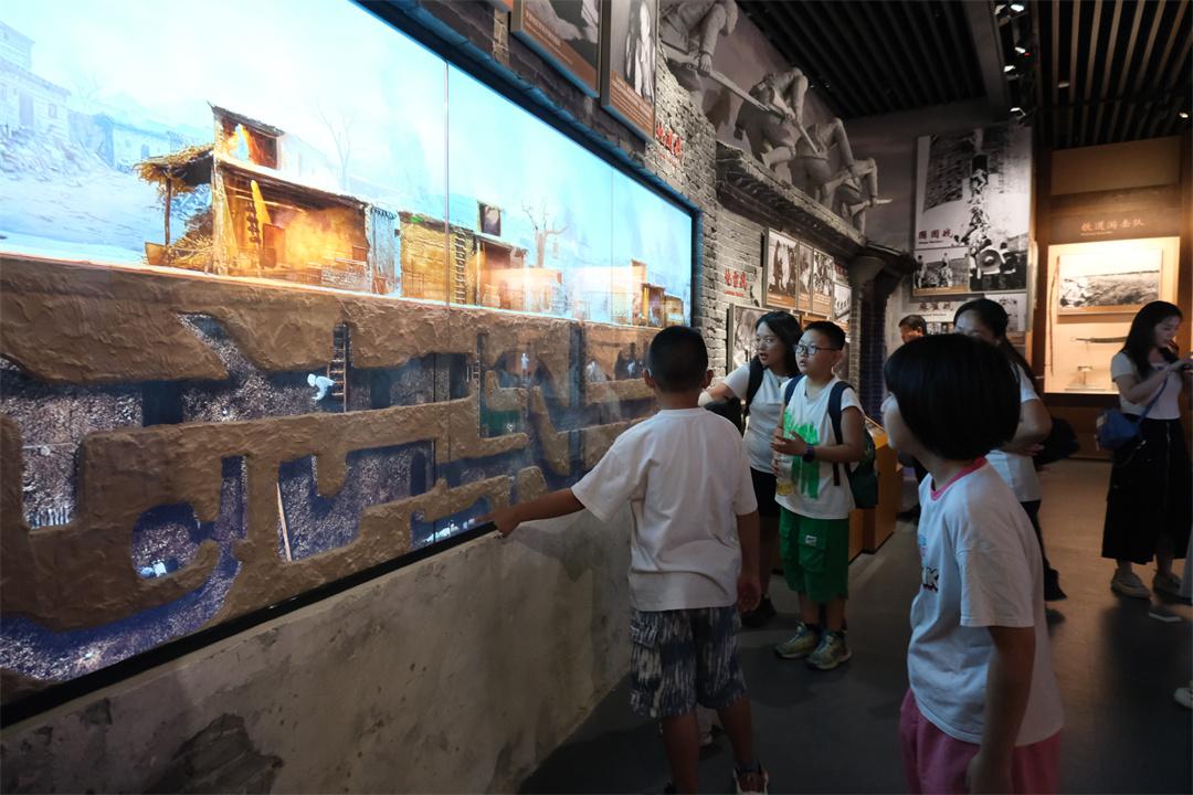 圖為在地道戰(zhàn)互動屏幕前認(rèn)真觀看的孩子們。