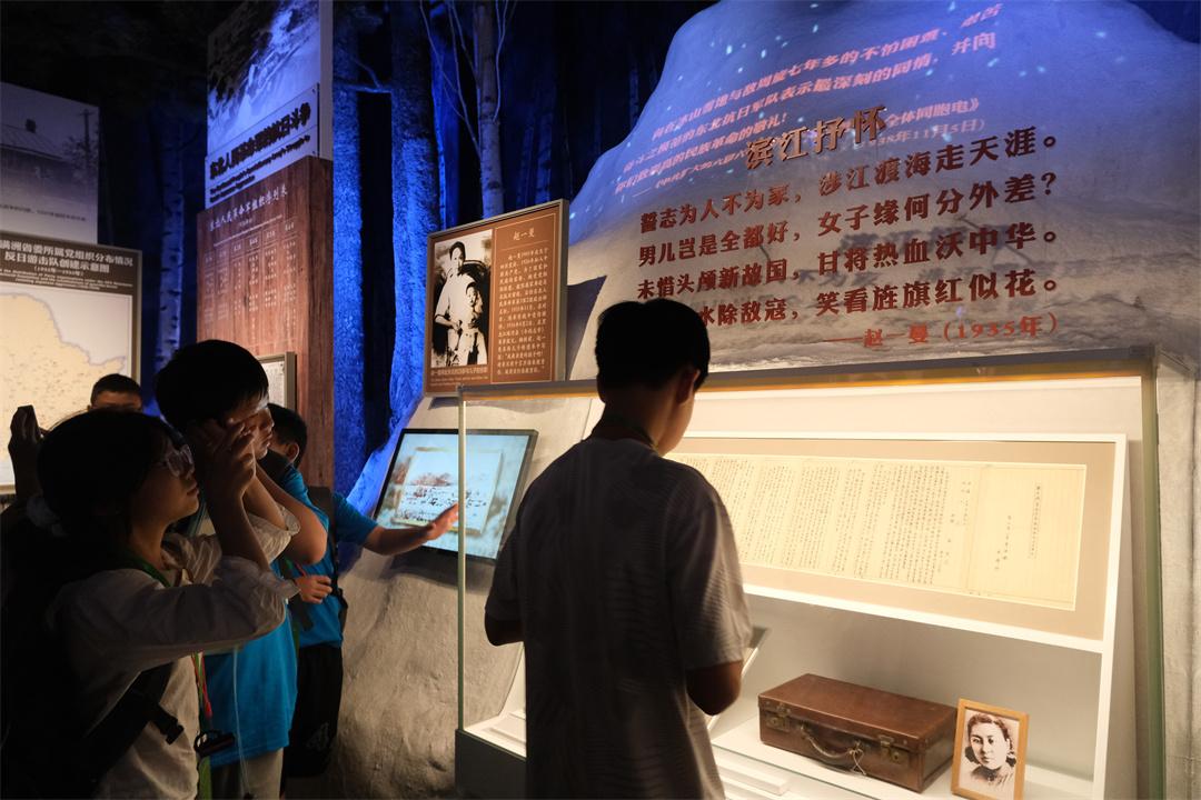 圖為參觀群眾認(rèn)真觀看展出的趙一曼相關(guān)文物。