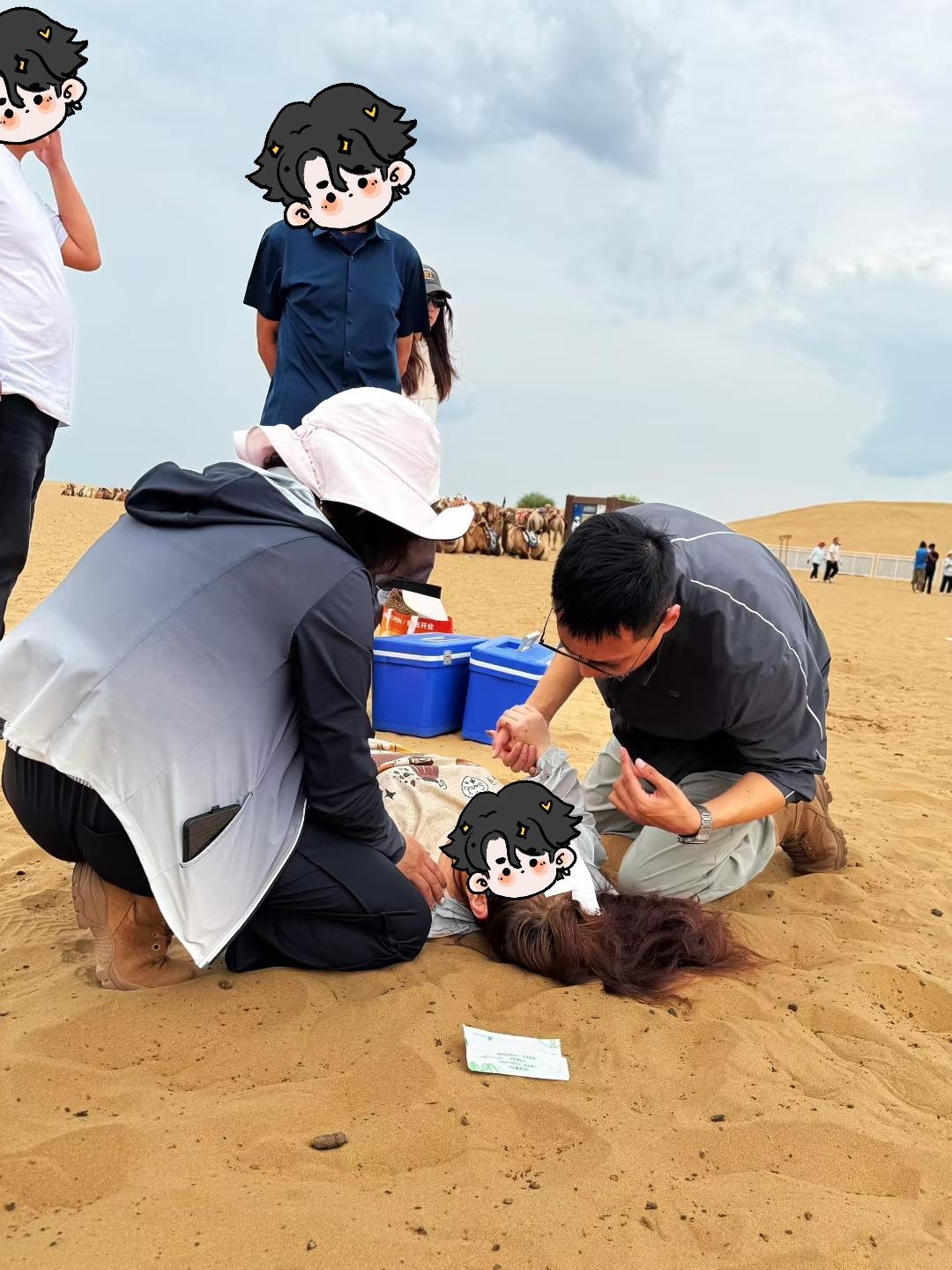 當(dāng)日下午,一名30多歲女游客帶著三歲兒子體驗景區(qū)駱駝騎行項目時,因駱駝突然受驚失衡,母子二人從駝背上墜落倒地,情況十分危急。景區(qū)工作人員雖然第一時間抵達(dá)現(xiàn)場,但因缺乏專業(yè)醫(yī)療知識,無法及時進行有效救治。