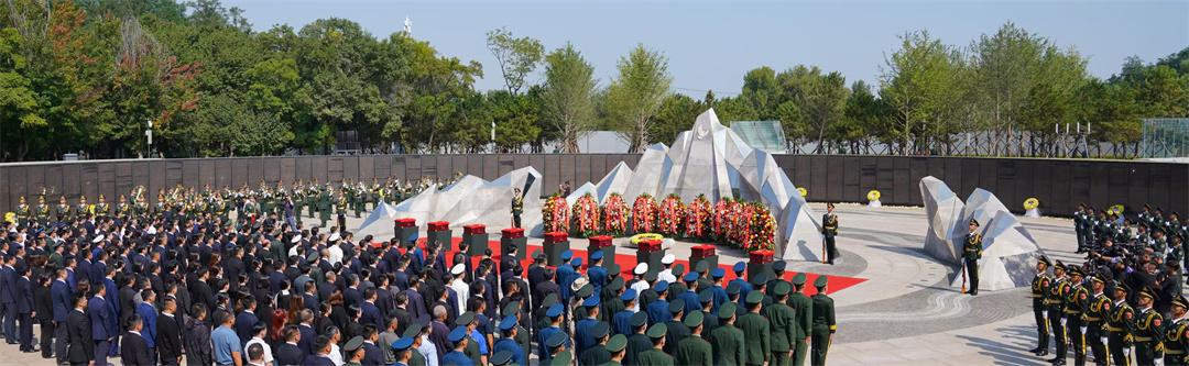 9月13日10時(shí),安葬儀式開始。陵園下沉式紀(jì)念廣場(chǎng)環(huán)形烈士英名墻下,擺滿黃白相間的菊花,參加儀式的人們肅穆站立。軍樂隊(duì)奏響婉轉(zhuǎn)低回的《思念曲》,在解放軍儀仗司禮大隊(duì)官兵持槍護(hù)衛(wèi)下,禮兵們邁著整齊的步伐,護(hù)送志愿軍烈士遺骸棺槨緩步進(jìn)入紀(jì)念廣場(chǎng),全場(chǎng)奏唱中華人民共和國國歌。
