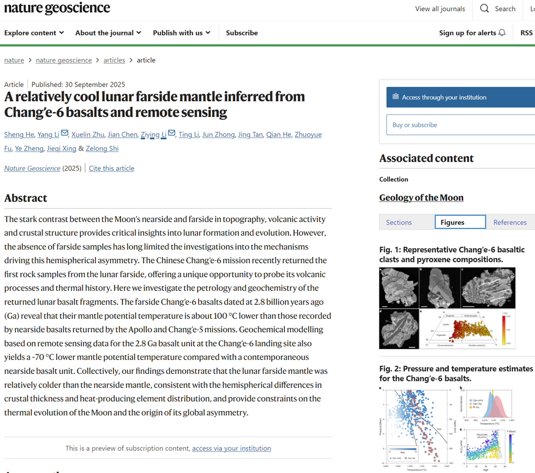 圖為《自然·地球科學(xué)》(Nature Geoscience)官網(wǎng)文章截圖。