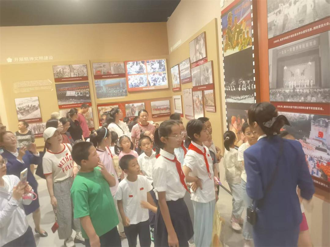 南京雙擁文化館展陳面積約2500平方米,主題為“軍民同心榮光共鑄”,分為浴血奮戰(zhàn)魚(yú)水情深、奮發(fā)圖強(qiáng)休戚與共、勇立潮頭軍民同心、踔厲前行強(qiáng)國(guó)強(qiáng)軍四個(gè)篇章,采取圖文、實(shí)物、影像、AI復(fù)原等多元手段,講述發(fā)生在南京的雙擁故事,生動(dòng)呈現(xiàn)“愛(ài)我人民愛(ài)我軍”的時(shí)代篇章和軍政軍民團(tuán)結(jié)的恢宏畫(huà)卷。試開(kāi)放當(dāng)天,有上千人次前來(lái)參觀。