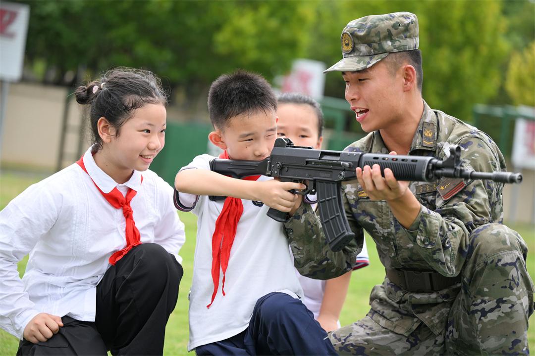 近日,武警安徽總隊某部舉行“軍營開放日”活動,駐地300余名小學生探秘軍營,零距離感受軍營生活,接受國防教育,增強國防意識。