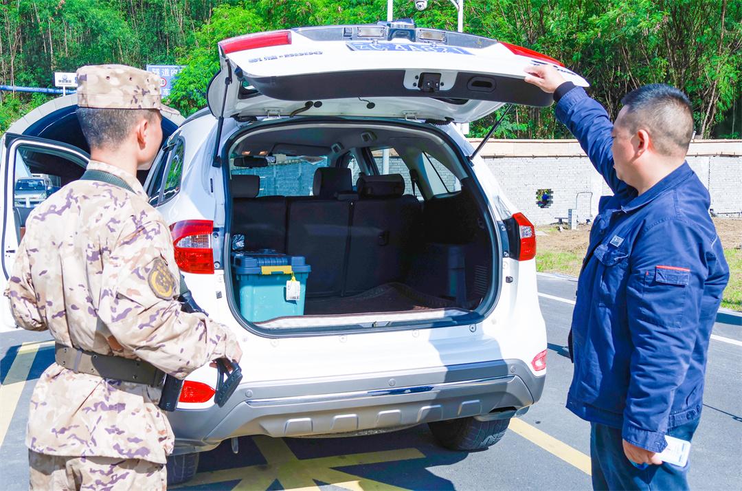 圖為官兵查驗(yàn)過往車輛。