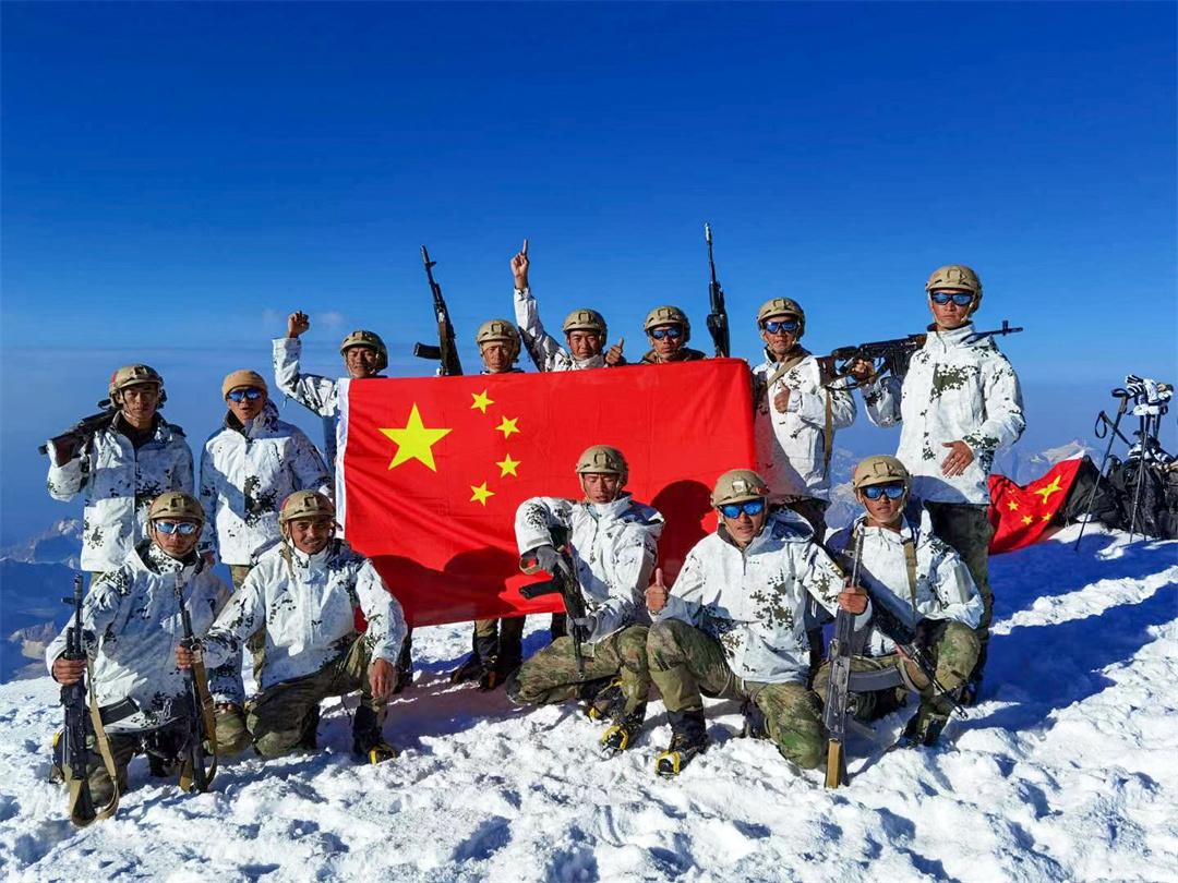 圖為2022年“厄爾布魯士之環(huán)”國(guó)際軍事比賽中,次羅布(前排左二)與戰(zhàn)友們登頂厄爾布魯士西峰山頂。