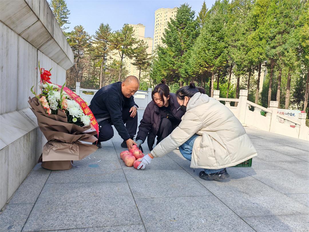 這次,為了趕在抗美援朝出國作戰(zhàn)75周年紀(jì)念日當(dāng)天,將最新鮮的蘋果送到烈士墓前,支曉剛和支語桐、柳依彤凌晨4點(diǎn)就起床裝車,開著自家小客貨奔波4個(gè)小時(shí),抵達(dá)丹東市抗美援朝烈士陵園。