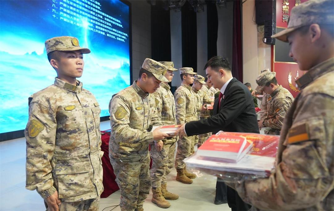 其間,軍地法官向官兵們贈送法律書籍、法宣產(chǎn)品等;面對面解答官兵法律問題,針對性啟動涉軍維權機制,幫助官兵化解涉法糾紛。