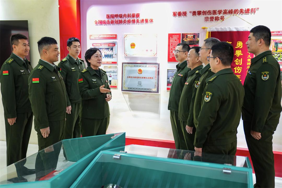 走進醫(yī)院,“勇當紅色軍醫(yī)傳人、勇攀軍事醫(yī)學高峰”幾個大字在陽光下熠熠生輝。不遠處,一支野戰(zhàn)醫(yī)療團隊正在緊張投入批量傷員救治課目演練。